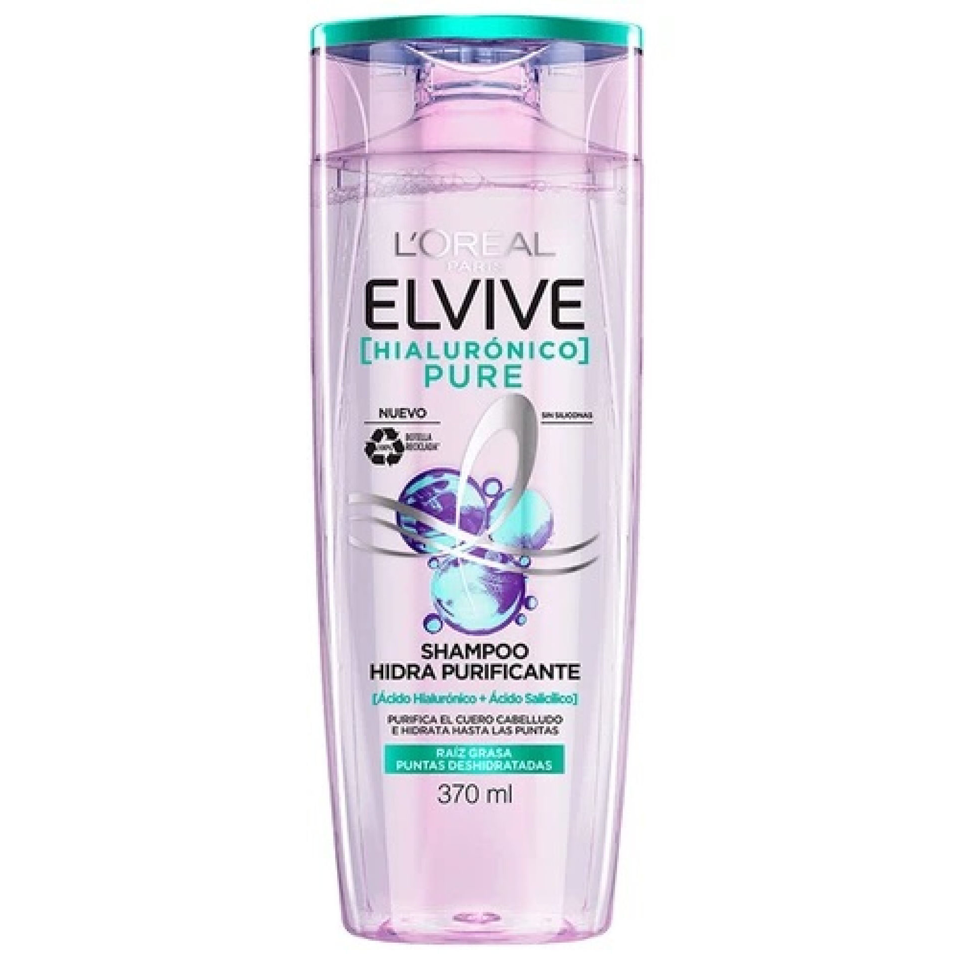 Este producto es un shampoo de 370 ml con una fórmula enriquecida con ácido hialurónico que ayuda a hidratar y revitalizar el cabello. Su textura es suave y ligera, ideal para limpiar delicadamente el cuero cabelludo y las hebras capilares.