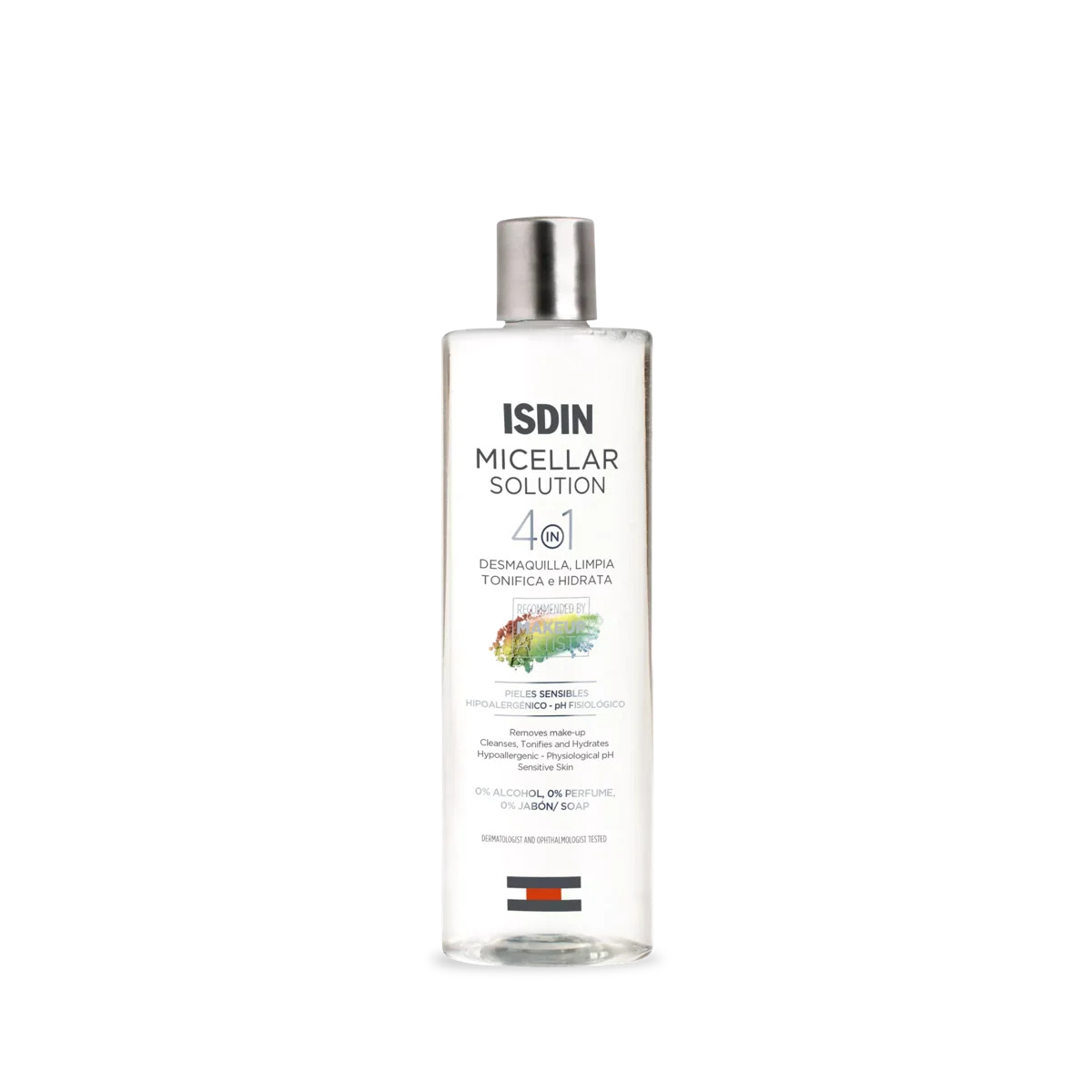 ISDIN Micellar Solution desmaquilla, limpia, tonifica e hidrata en profundidad, dejando una piel suave, fresca y libre de impurezas.